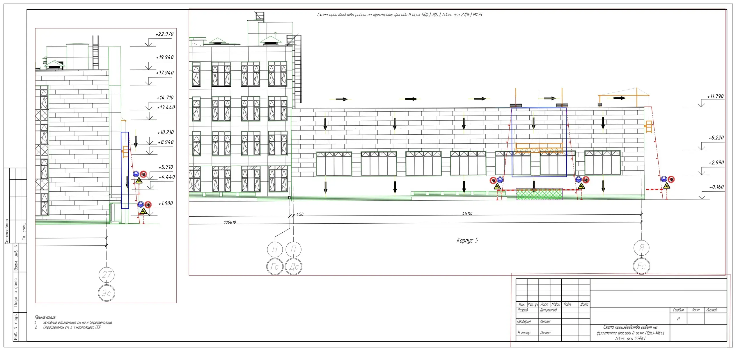 В ППР на фасадные работы указаны следующие пункты: