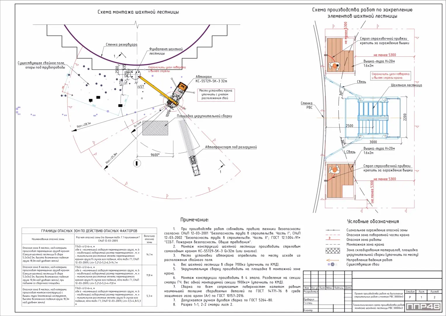 Для целей установки грузоподъемных машин, организации и выполнения строительно-монтажных работ с их применением должен быть разработан проект производства работ грузоподъемными кранами (ППРк). Разработка, согласование и утверждение ППРк должны осуществляться в соответствии с РД-11-06 0.